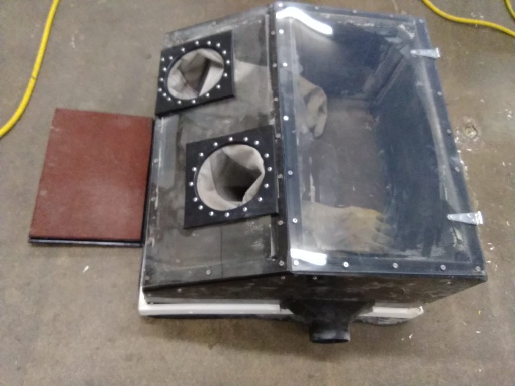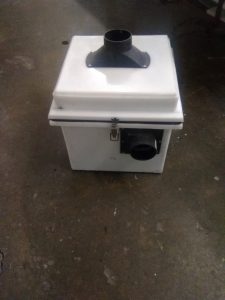 Here is a multi stage filter box and a grinding hood attachment, which vacuum itself to the object in which it is attached to. The filter box can use a variety of air draw sources, these items are both patent and patent pending.